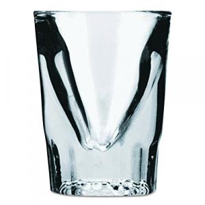 This whiskey glass has a simple, unadorned design with slanted sides, a thick base, and a tempered rim. A must-have addition to any glassware collection. Cup Type: Cold Capacity Volume: 1 1/2 oz Materials: Glass Colors: Clear.