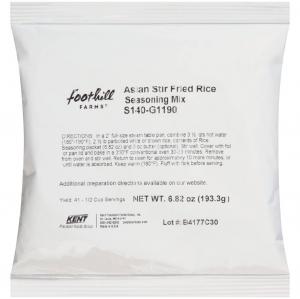 Foothill Farms Asian Stir Fried Rice Seasoning Mix, 6.82 Ounce -- 10 per case. The flavorful foundation of nearly every Asian-inspired entree, Foothill Farms Asian Stir Fried Rice Seasoning is a complex blend of Kikkoman Soy Sauce, garlic, ginger and onion. It features just enough green peas, diced