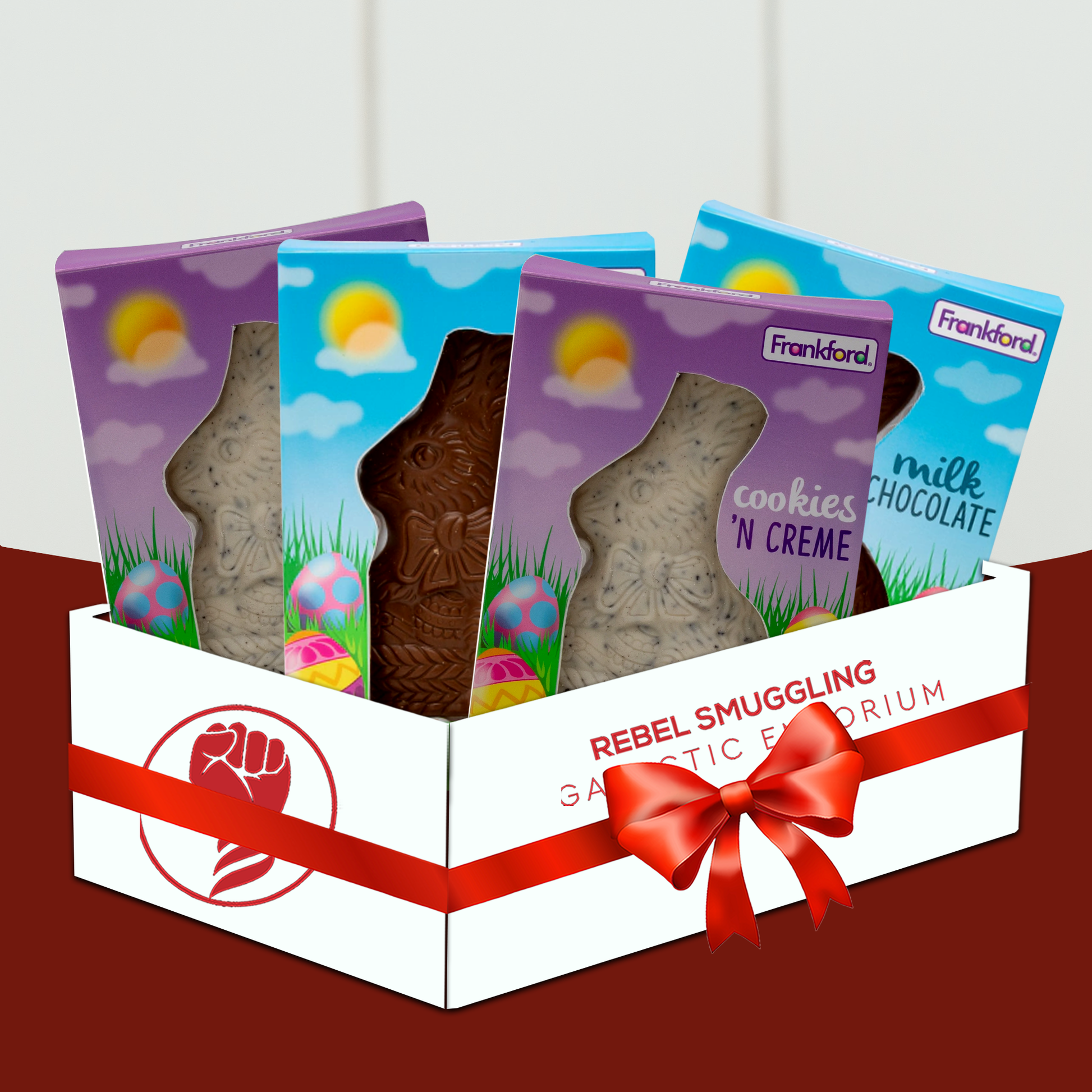 Introducing Frankford Variety 4 Pack of Bulk Chocolate Easter Bunny- Includes 2 x Milk Chocolate Easter Bunny and 2 x Cookies and Cream Chocolate Easter Bunny, the perfect indulgence for chocolate lovers during the Easter season. Made with premium quality milk chocolate, this bunny set is sure to satisfy your cravings. With its rich and smooth texture, it will melt in your mouth, leaving you wanting more. Whether you're looking to fill your Easter baskets or simply enjoy a delicious treat, our milk Chocolate Bunny Easter is the perfect choice. Indulge in the decadence of this chocolate delight and make your Easter celebrations extra special. Each of the four chocolate easter bunnies are solid and measure 2.25oz.