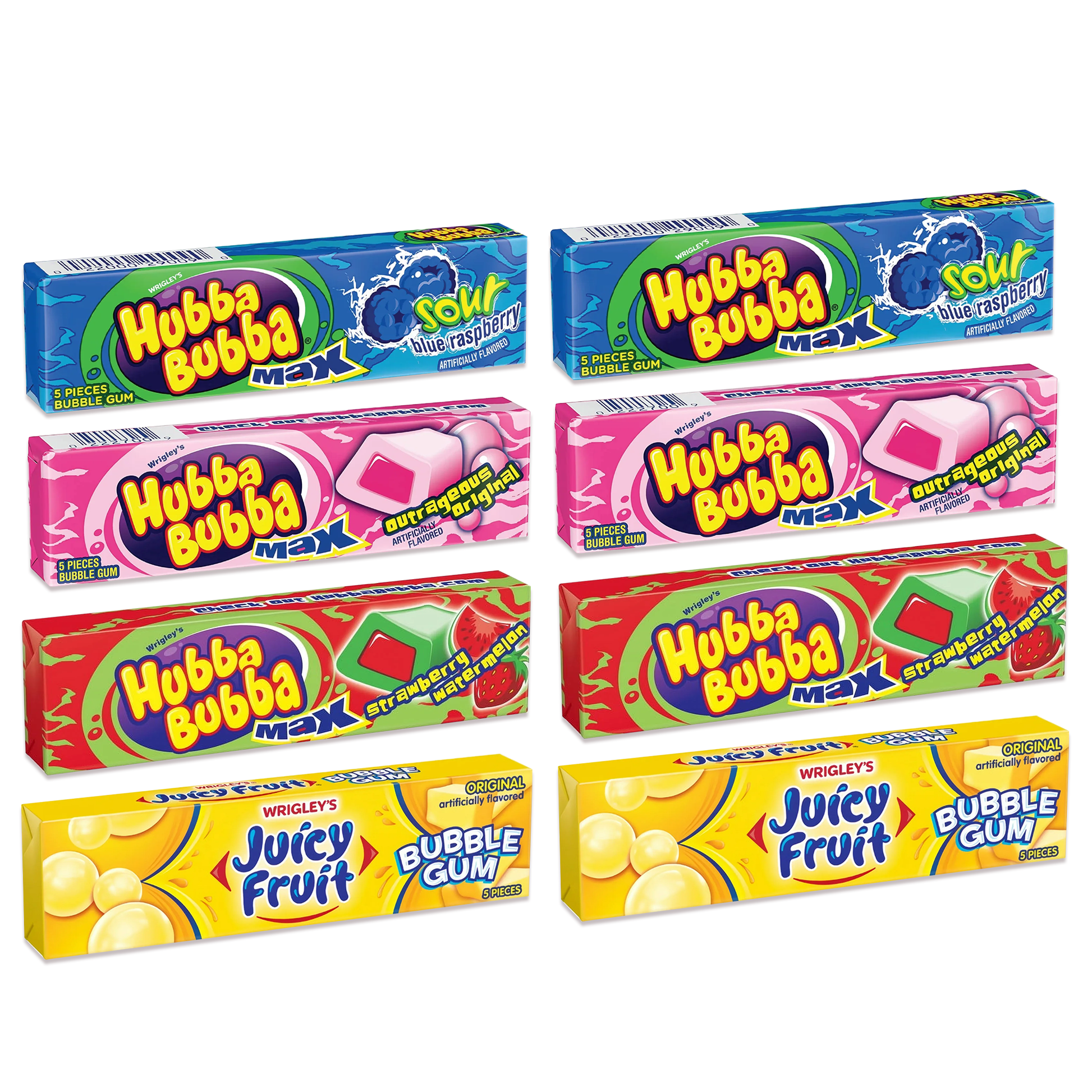 With 8 packs total, you'll have plenty of bubble gum to enjoy throughout the week. Stock up and save with this convenient bulk pack that combines Hubba Bubba favorites with the popular Juicy Fruit brand.