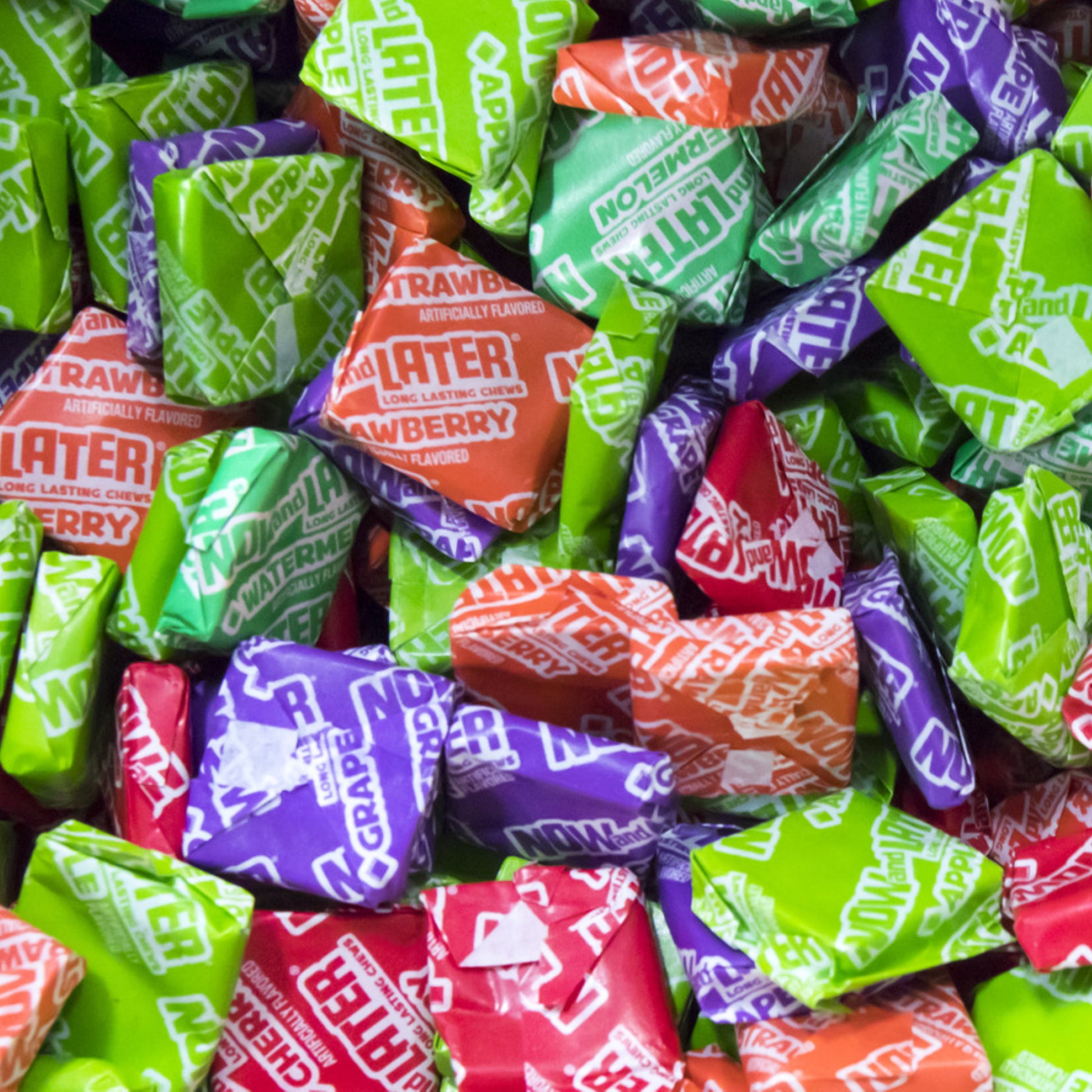 Now and Later bulk 2lb bag comes with your favorite soft Now and Later chewy candy. Individually wrapped candy chews means this works great for parties, special events, pinatas, party favor bags, office candy jars, reception desk candy jars, or for sharing with friends, family, or coworkers. Buy in bulk and save while never running out of your favorite Now and Laters bulk candy.