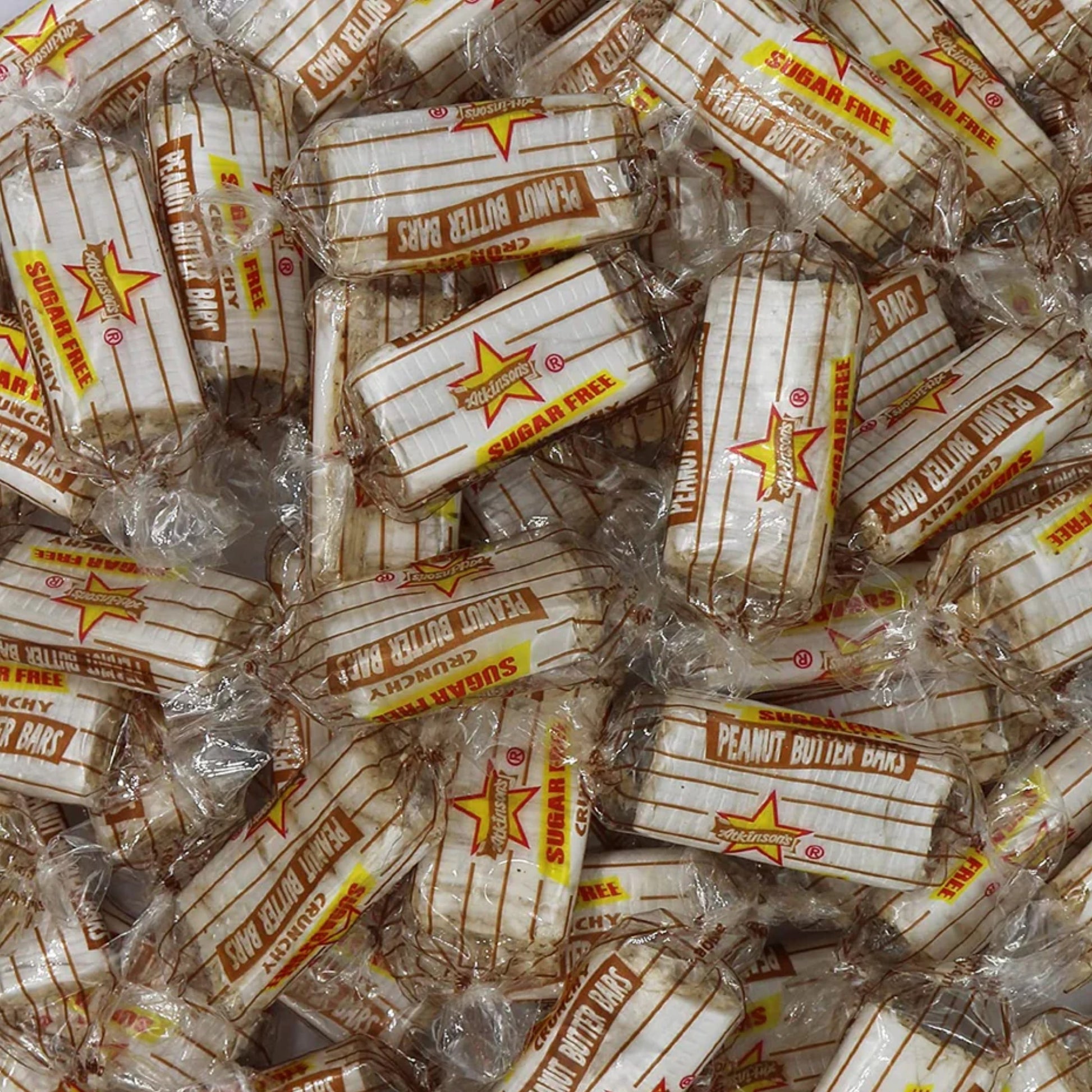 Bulk 2lbs bag of sugar free Atkinson peanut butter bars. Enjoy all the deliciousness of peanut butter candy without the guilt! Atkinson's Sugar Free Peanut Butter Bars Candy is here to satisfy your cravings. Each crunchy candy bar is made with sugar-free peanut brittle, making it an ideal treat for diabetics. Our peanut butter logs candy and golden crunchies are crafted using traditional old-fashioned recipes. Enjoy this bulk pack of 1lb of candy in its sugary free goodness. Indulge in this unique combination of sweet and salty - it's an experience you won't forget!
