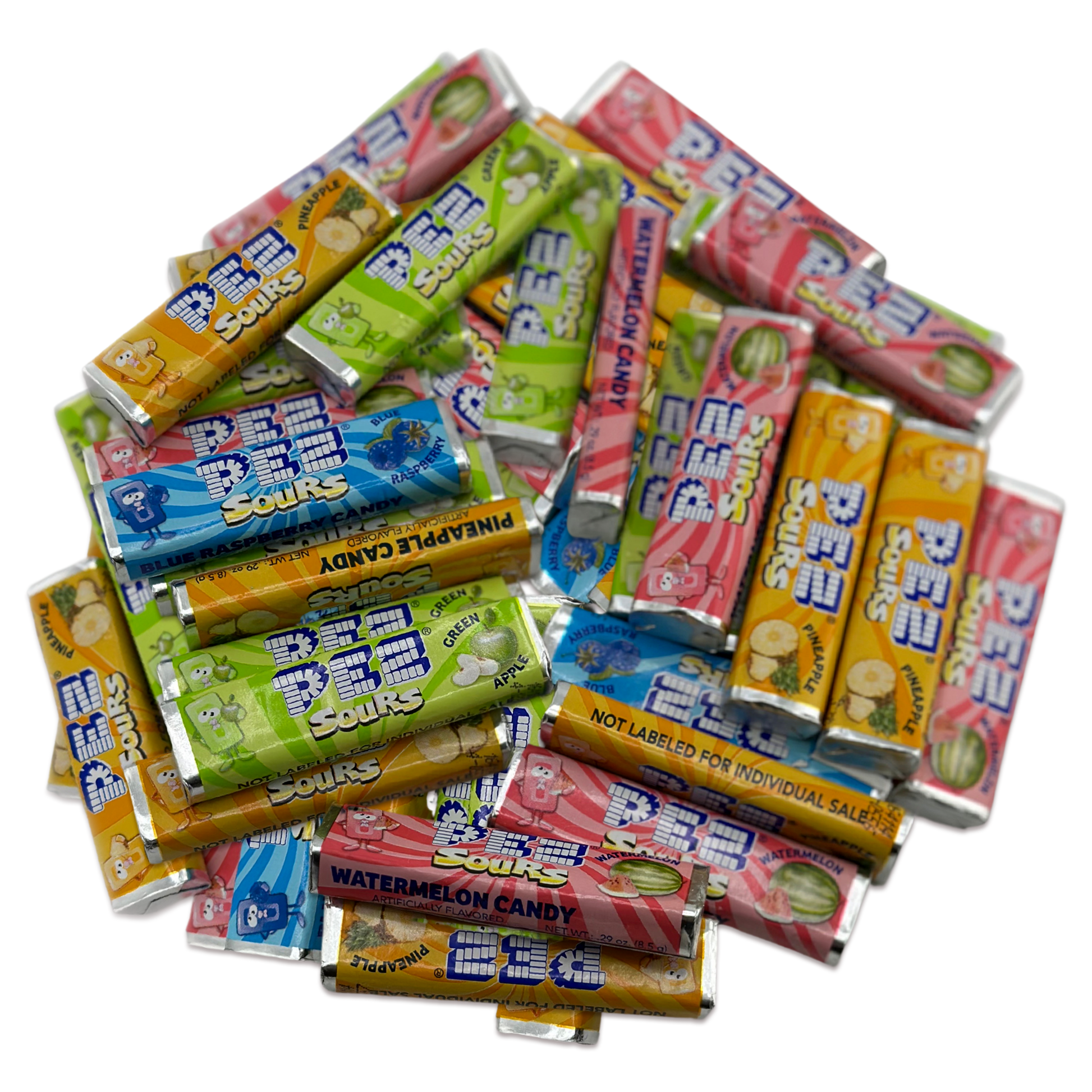 2LB Bag of sour Pez candy refill rolls. Flavors include: sour pineapple, sour green apple, sour watermelon, and sour blue raspberry. Continue the life of your pez dispensers by feeding them new bulk pez candy refill rolls. Pez candy refills are compact enough they can be stored pretty much anywhere and everywhere so you will always have a roll ready when hunger strikes. These pez refill rolls also work great for candy buffets, party favors, sharing with friends and coworkers, or to keep a roll handy in several different places around the house, cars, desks, backpacks, and lunchboxes.