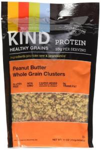 Kind Healthy Snacks Peanut Butter Whole Grain Cluster, 11 Ounce -- 6 per case. Peanut Butter Whole Grain Clusters are a protein packed blend of peanuts and whole grains amaranth, quinoa, oats, millet and buckwheat. These delicious clusters provide 5g of protein per serving and are a tasty way to get 16g of whole grains.
