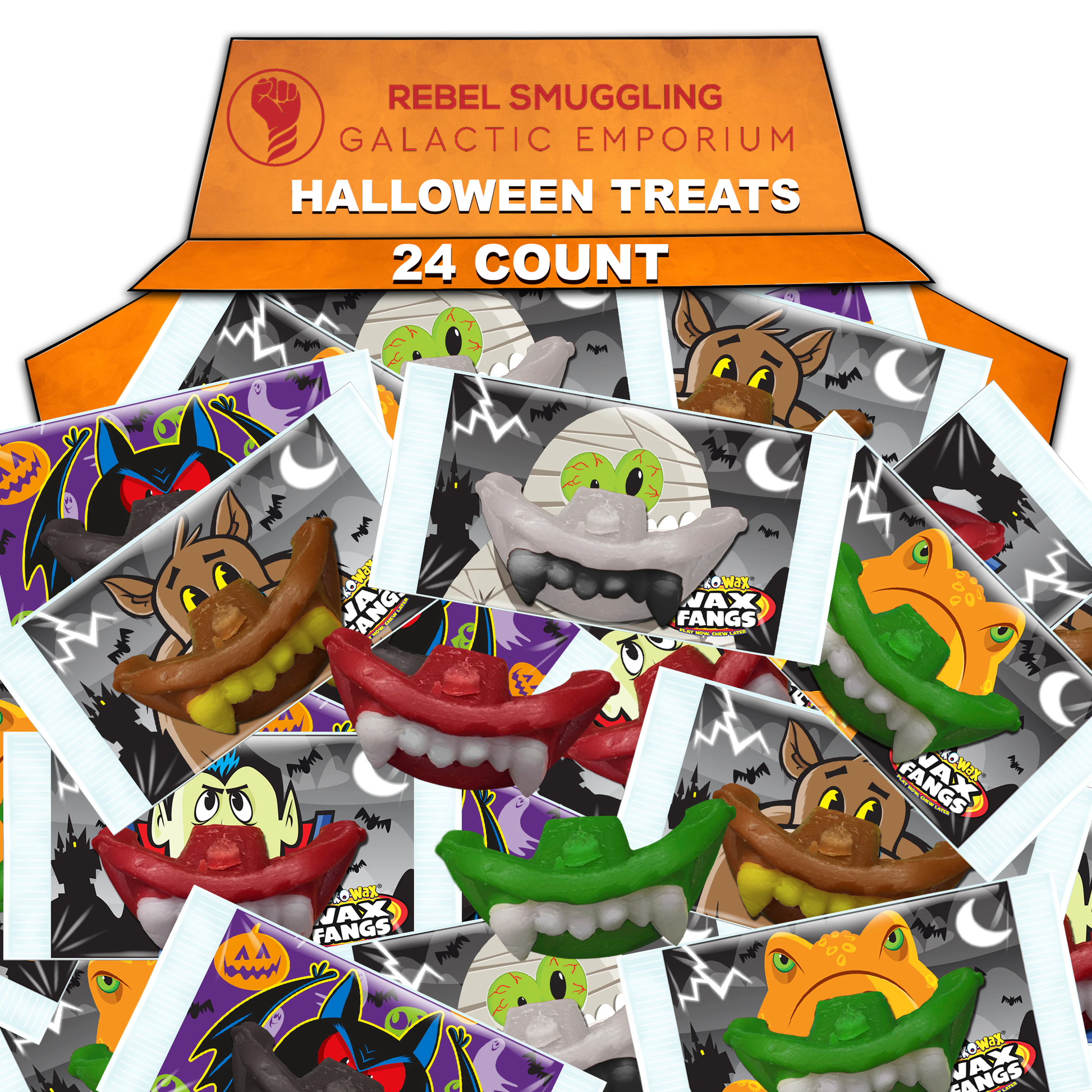 Halloween Spooky Wax Fangs Bulk 24 Pack Variety of Monster, Mummy, Vampire, Bat by Rebel Smuggling Galactic Emporium